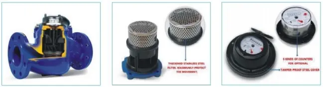 Verwendung: Der vertikale Woltmann-Wasserzähler ist eine Art Woltmann-Wasserzähler (Schraubenflügel). Der Schraubenflügel-Wasserzähler, auch Woltmann-Wasserzähler genannt, ist eine Art Schnellwasserzähler, der für den Einsatz in Rohrleitungen mit großem Durchmesser geeignet ist. Er zeichnet sich durch eine große Durchflusskapazität und einen geringen Druckverlust aus.