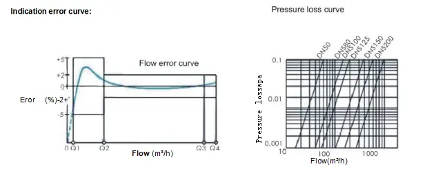 Der maximal zulässige Fehler im hohen Bereich (Q2 ≤ Q ≤ Q4) beträgt ± 2 %, wenn die Wassertemperatur > 30 °C beträgt.